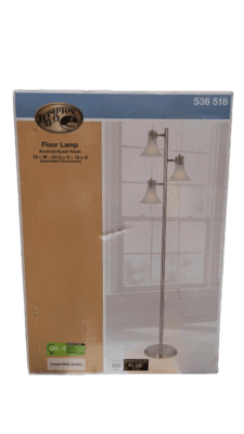 The Hampton Bay 64-1/2 in. Floor Lamp features a stylish brushed nickel finish and rotating white-frosted shades to direct light. Individual rotary switches control light output. A stylish and practical lamp for any room in your home.
