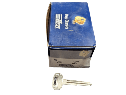Automotive key blanks are manufactured from solid brass material. They are nickel plated to assure a long-lasting durability and to maintain a bright finish. The key blank has the manufacturer’s item number on the key for easy identification.