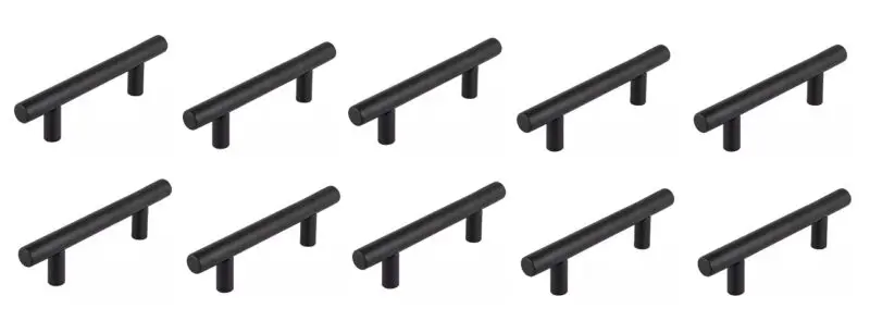 The Design House hollow center bar cabinet pull will adorn any cabinet with modern elegance. This stylish cylinder-shaped steel drawer pull in a bold matte black finish which evokes style and luxury while maintaining durable functionality. Accentuate your cabinetry in the kitchen, bathroom, home office, pantry, bedroom dresser, or any space needing some refinement for an easy facelift. Available in a 10-pack, with an overall length of 5 inches and a 3-inch (76mm) center-to-center. This cabinet door handle comes with mounting hardware screws in two varied sizes to accommodate your cabinet door thickness. Designed and manufactured by Design House, the trusted source for quality lighting, hardware, plumbing, kitchen, and bath products for every taste and budget.