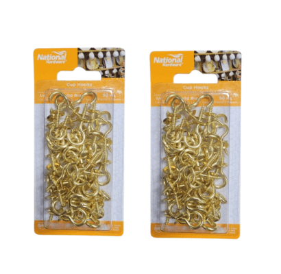 National Hardware Cup Hook, Working Load Limit: 10 lb, Opening Size: 0.27 in, Projection Size: 0.76 in, Wire Diameter: 0.09 in, Thread Length: 0.3 in, Brass, Solid Brass, 1.14 in L