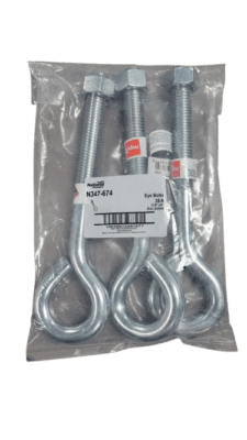 Designed for industrial and home applications. All eye bolts have standard machine screw threads – course thread on extra large sizes ( 1/2 In. x 12 In.) Interior and exterior applications. Manufactured from steel wire. Zinc.