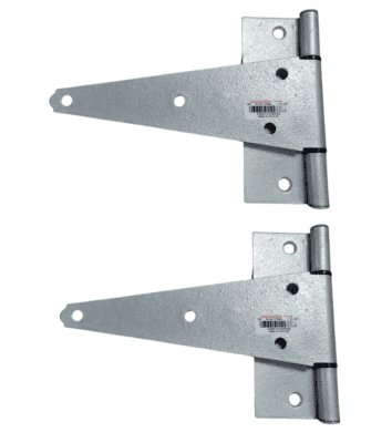 T-hinges extra heavy – steel lgth 8 inches Offset screw holes for extra strength and to prevent wood from splitting. Tight pin for left or right hand applications. Manufactured with hot-rolled steel. Product Overview: Offset screw holes for extra strength and to prevent wood from splitting. Tight pin for left or right hand applications. Heavy-duty. Manufactured with hot-rolled steel.