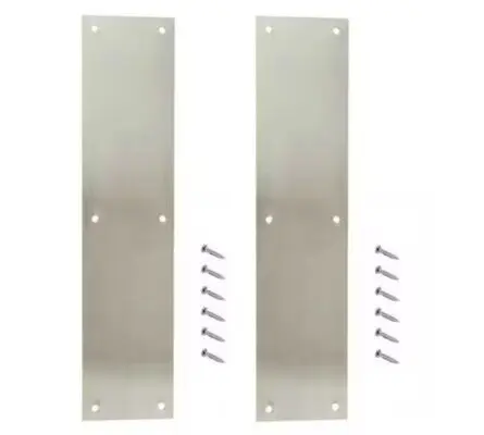The Everbilt 3.5 in. x 15 in. Push Plate is ideal for commercial doors, adding a decorative accent and protecting the door surface in high- traffic areas. Easily cleaned for a sleek look, it features a durable, rust-resistant, stainless steel construction. For added convenience, screws are included for easy installation.