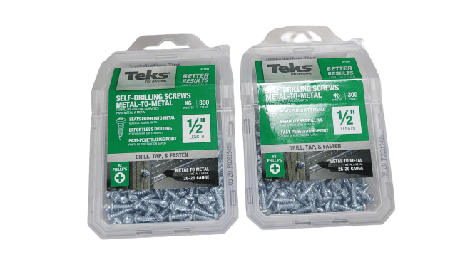 Teks #6-18 x 1/2 in. Zinc-Plated Steel Pan-Head Phillips Self-Tapping Drill-Point Screws (300-Pack) are ideal for attaching HVAC, electrical, metal framing, and general metal-to-metal applications for secure fastening and strong holding power. Teks screws provide secure metal-to-metal fastening and strong holding power without the need to pre-drill. Screws tap their own threads. Engineered drill point and flute allow for efficient material removal