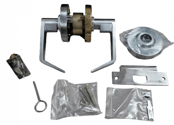 Robust Grade 1 Lever Lockset – Classroom Function – Sierra (SB) Lever – 306 ANSI Strike (1-1/4″ x 4-7/8″, 1-1/4″ Lip, Square Corner) – Q71 Dead Latch (1-1/8″, Square Corner, 2-3/4″ Backset) – 26D Satin Chrome Finish – SFIC Cylinder Less Core