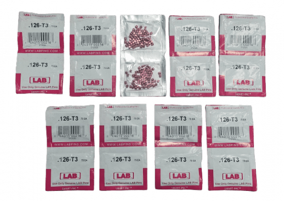 675-PACK LAB SECURITY Universal Replacement Pins .003 Increments Top Size .126