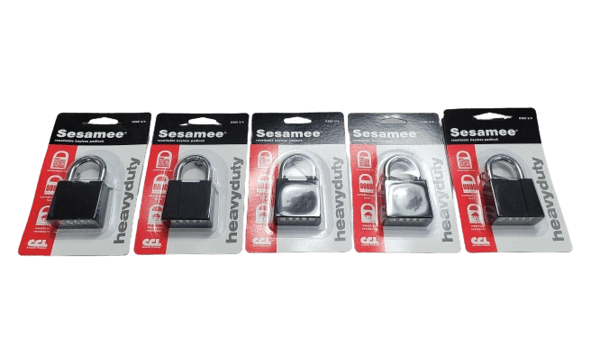 Features: 10,000 possible combinations. Automatic 0000 stop. All brass internal locking mechanism. Combination is quickly and easily set, and can be changed by the owner. K500 series body is Heavy pressure cast, Black Epoxy finish. One combination reset tool included with each padlock.
