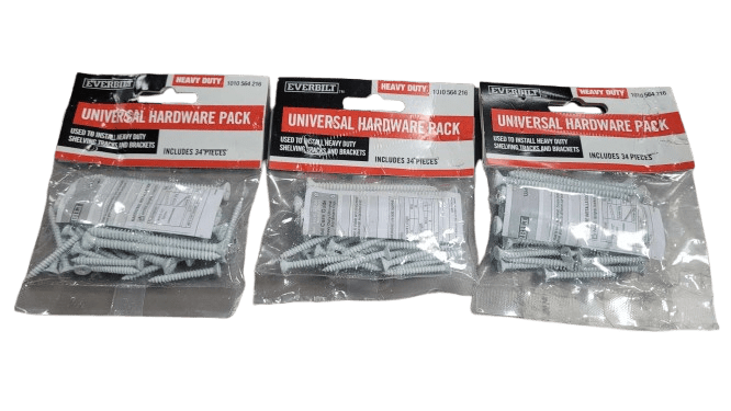 This Heavy-Duty Hardware Pack will help organize any room. The pack includes all necessary hardware to install heavy-duty tracks and wood shelves. Compatible with the heavy-duty double slot track shelving system.