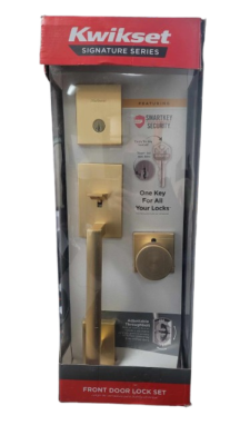 Step up to designer styles and superior security with Kwikset Signature Series products. The San Clemente handleset has a sleek, modern look. With clean lines and a variety of finishes, you can easily upgrade the entry to your home. San Clemente also features an adjustable screw that allows for easy door mounting and a guaranteed fit. The latch bolt is operated by the thumb piece on the outside and the grip on the inside. The deadbolt is operated by a key on the outside and a thumb turn on the inside. The rich tones of Matte Black add the finishing touch to this product. The Matte Black finish provides a rich and warm complement to the product’s style.