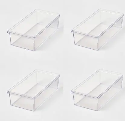 This modular design comprises ten individual trays of different sizes that are able to be clipped together on all sides, allowing you to arrange them in any order to fit your drawer space – they can even be divided and used in multiple drawers. To change the order, simply unclip each tray and rearrange as necessary. Perfect for organising and storing a wide range of household items such as cutlery, utensils, stationery, tools and craft accessories. The set also comes with self-adhesive, non-slip feet which can be applied once the final arrangement of trays has been decided. Wipe clean with a damp cloth.