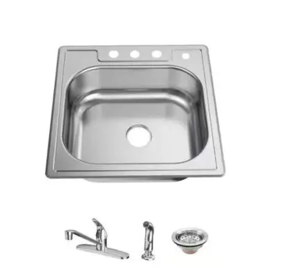 All-in-One Glacier Bay Drop-In Single Bowl Kitchen Sink features high quality and durable stainless steel with a long-lasting satin finish for added style to enhance your kitchen. The generous single bowl offers plenty of room to make food preparation and clean-up easier, while an sound deadening pad reduces noise for a quieter kitchen. The faucet deck includes pre-drilled faucet holes for the included faucet and sprayer.