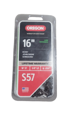 The Oregon S57 is designed to fit all chainsaw brands, with models that require a 3/8 in. pitch. 0.50 in. (1.3 mm) gauge, with 57 drive links. Fits chainsaw models from several brands including Cub Cadet, Echo, John Deere, Shindaiwa and more. See the back of the package image for a list of saws that this chain fits.