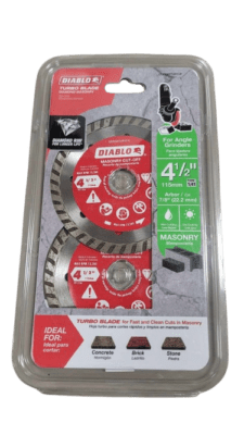 Use the DIABLO 4-1/2 in. Turbo Rim General-Purpose Diamond Blade for cutting block, brick and cured concrete. DIABLO diamond blades are made from high-quality diamond content for maximum cutting ability. The turbo rim design was engineered for constant contact with the material to deliver a smoother finish than segmented blades.