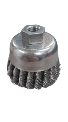 Weiler 2-3/4″ Single Row Knot Wire Cup Brush provides heavy-duty brushing action with some flexibility. Ideal for demanding cleaning applications on relatively flat surfaces. 1/2″-13 nut for use on right angle grinders.