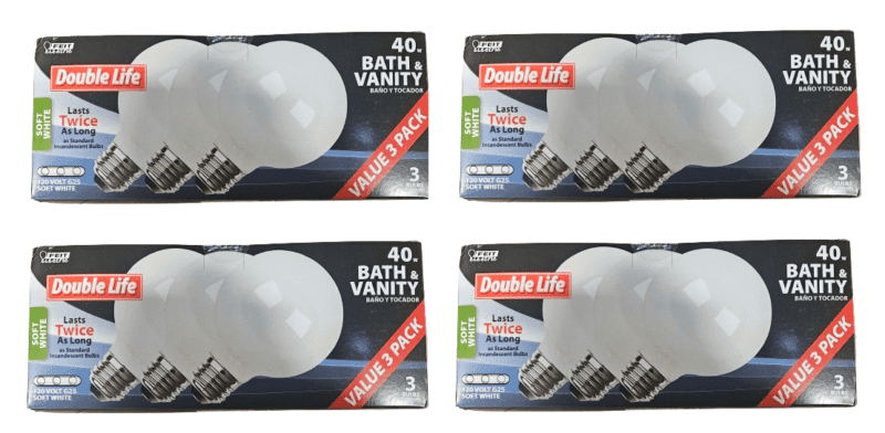 12-PACK Master Case Feit Vanity Globe Light Bulbs White 40G25-W-3