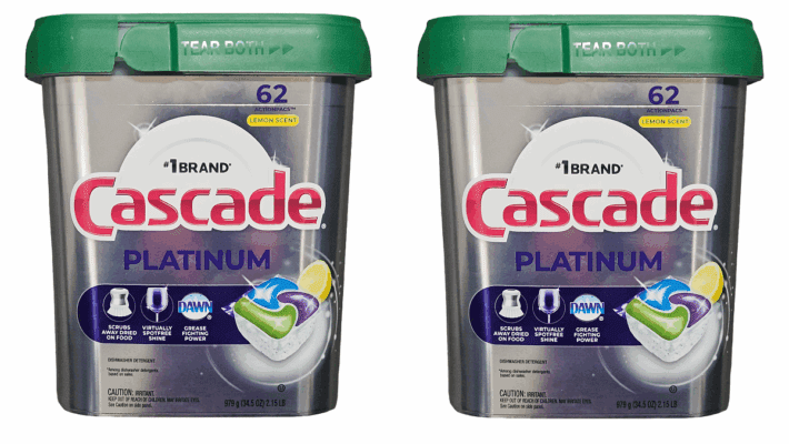 Cascade Platinum ActionPacs dishwasher detergent cleans burnt-on messes in just one wash, with no pre-wash needed. That’s because the pod dissolves fast to start cleaning right away, releasing the soaking power of Dawn dishwashing liquid, while food-seeking enzymes latch on and break down food into particles so small they can flow right down the drain. It’s so powerful it even works in the Quick Wash cycle. Plus, Cascade Platinum dishwashing detergent is formulated to help prevent hard water filming, keeping your machine looking fresh and clean. Simply pop in an ActionPac and reveal a Platinum sparkle. Save up to 20 gallons of water per dishwasher load when you skip the pre-wash and run your dishwasher with Cascade Platinum.