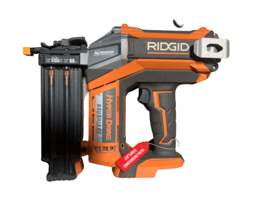 RIDGID introduces the 18-Volt Cordless Brushless HYPERDRIVE 18-Gauge 2-1/8 in. Brad Nailer (Tool-Only) Belt Clip, Bag, and Sample Nails. RIDGID HYPERDRIVE offers you all the power of a pneumatic nailer in a cordless tool. With no compressor, no hose, and no gas cartridge, this 18-gauge brad nailer enables faster set-up and easier maneuvering on the job site, driving 18-gauge nails from 5/8 in. to 2-1/8 in.