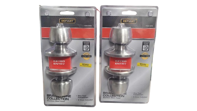 Affordably outfit exterior doors with this keyed entry knob from Defiant. The Brandywine Keyed Entry knob has been newly designed with a 70 mm Rose Plate that easily mounts to doors 1-3/8 in. to 1-3/4 in. thick with the included hardware. The new design provides coverage of paint rings left from previous installations of door hardware. It is perfect for entry, basement or garage doors beyond which security is needed. It features a dual backset latch that fits both 2-3/8″ and 2-3/4″ backsets without any adjustment needed. Interchangeable faceplates for drive-in and traditional installations. The sturdy knob nicely coordinates with other fixtures in your home for a cohesive look.