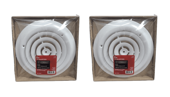 Simple, versatile, easy to operate and easy to install. The 800 series are round air diffusers. This step down ringed diffuser is used to cover duct openings. Our product is constructed to ensure maximum airflow and the simple design will compliment your home decor. Product features: high quality steel, white powder coat finish, Step down diffuser rings deflect air stream 360.