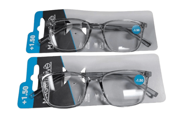2-PACK Magnifeye Square Round Clear Frame +1.50 Reading Glasses