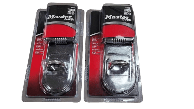 The Master Lock 720D Steel Heavy Duty Hasp Latch features a 6-1/4 in. (16 cm.) long hardened steel body. Hasp latch is zinc-plated hardened steel which provides added strength and weatherability. Hasp’s hardened boron alloy staple offer maximum protection against cutting and sawing. Hinged body is Ideal for reaching around corners and securing hard-to-lock property. Master Lock’s Lifetime Guarantee provides peace of mind from a brand you can trust.