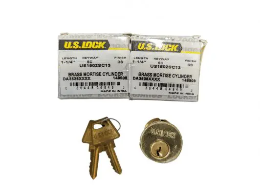 2-PACK US Lock 1-1/4″ Brass Mortise Cylinder SC Keyway US1502SC13