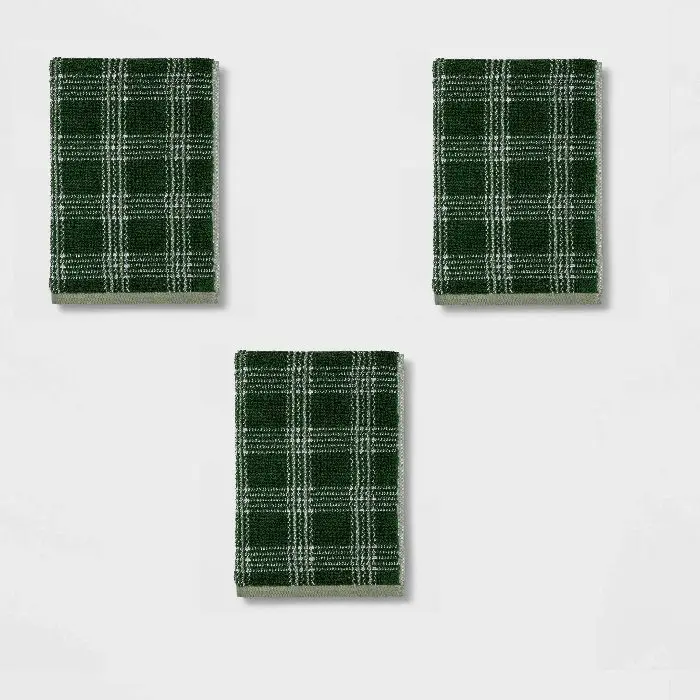 3-PACK Theshold Plaid Hand Towel Green