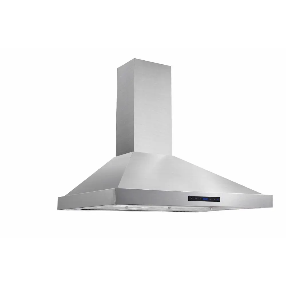 The contemporary styling of this Vissani stainless steel indoor or outdoor vented wall-mounted chimney style range hood is certain to complement any kitchen design. Similarly, the powerful and quiet high performance blower in conjunction with 3 all stainless steel baffle filters is certain to eliminate smoke, grease, and cooking odors with utmost efficiency. 2 energy efficient dual-intensity LED bulbs will illuminate the cooking surface with bright and evenly distributed light. 3 dishwasher-safe, all stainless steel baffle filters fully enclose the bottom to make maintenance as easy as can be. A modern electronic touch panel display with programmable timer and 2 level lighting options will enhance your cooking experience with value-added functionality and convenience.