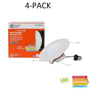 The Commercial Electric 5/6in. Color temperature select LED downlight is an easy way to upgrade your existing can lights to the sleek look of recessed lighting and LED energy efficient technology. These LED downlights are compatible with most dimmer switches and are equipped with a unique color temperature (CCT) changing technology. Now you can select your color temperature depending on your needs or preferences with the flip of a switch located on the back of the downlight. Test different color temperatures before installation and never be dissatisfied with CCT again. Color temperature of these LED downlights ranges from Warm White (2700K) to Daylight (5000K), with three options in between: Soft White (3000K), Neutral White (3500K) and Bright White (4000K). Using only 9-watts of energy but produce brightness comparable to a 65-watt incandescent bulb, these LED downlight bulbs are estimated to cost only $1.36 per year to operate. Additionally, these LED downlights are rated to last for 50,000 hours or approximately 34 years. That is 50 times longer than a traditional incandescent BR30 lightbulb, which these downlights are used most commonly to replace. Compatible with most 5 and 6in. recessed housings and equipped with a medium (E26) socket base adapter for easy installation.