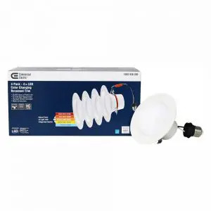The Commercial Electric 4 in. Color temperature select LED downlight is an easy way to upgrade your existing can lights to the sleek look of recessed lighting and LED energy efficient technology. These LED downlights are compatible with most dimmer switches and are equipped with a unique color temperature (CCT) changing technology. Now you can select your color temperature depending on your needs or preferences with the flip of a switch located on the back of the downlight. Test different color temperatures before installation and never be dissatisfied with CCT again. Color temperature of these LED downlights ranges from Warm White (2700K) to Daylight (5000K), with three options in between: Soft White (3000K), Neutral White (3500K) and Bright White (4000K). Using only 8.5-Watts of energy, but producing light similar to a 65-Watt incandescent, these LED downlight bulbs are estimated to cost only $1.36 per year to operate. Additionally, these LED downlights are rated to last for 50,000 hours or approximately 34 years. That is 50 times longer than a traditional incandescent BR30 lightbulb, which these downlights are used most commonly to replace. Compatible with most 4 in. recessed housings and equipped with a medium (E26) socket base adapter for easy installation.