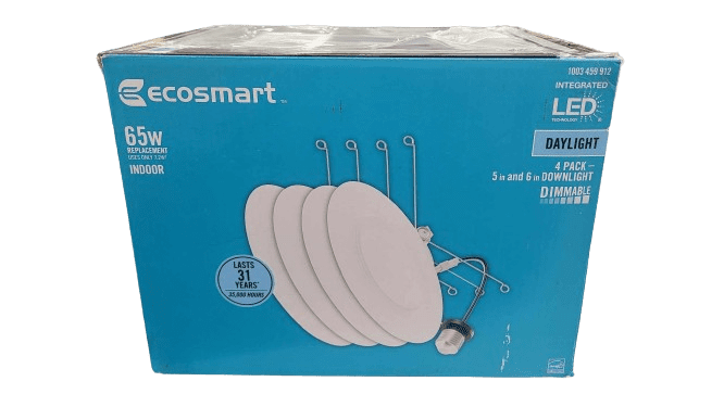 The EcoSmart 5 in. and 6 in. dimmable LED downlight is ideal for any room and is an excellent option to retrofit your existing can lights with energy saving LED technology. These bulbs use only 7.2-Watt of energy but emit 650 Lumens of brightness, which is equivalent to a 65-Watt incandescent light bulb. These daylight (5000K), dimmable LED downlights are compatible with most 5 in. and 6 in. recessed cans. Compatible with most LED dimmer switches, this item can be dimmed for light customization. This integrated LED downlight trim is one piece, which means no more changing bulbs. It is rated for last up to 35,000 hours of use.