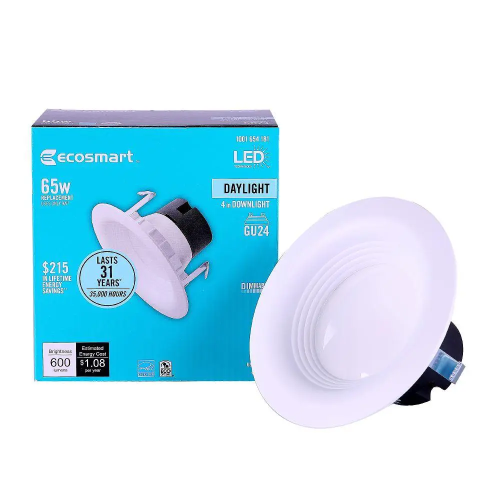 The EcoSmart 4 in. Dimmable LED Downlight has an innovative and concealed LED lighting technique. This allows for flawless distribution of light with no glare or dark spot. It has a seamless look without showing a bulb or a light source. It is easy to install, which saves time and frustration for our DIY’s and PRO customers.