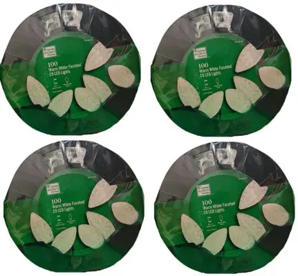 Create a dazzling display with these Home Accents Holiday 100-count warm white faceted C9 LED lights. You can add yuletide cheer to your Christmas tree or your deck using these energy-efficient bulbs that stay cool to the touch as they glow hour after hour. For more sparkle, you can connect these lights with up to 45 additional sets of 50 count lights.