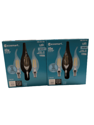 The 40-Watt Equivalent EcoSmart B11, E12 base filament LED light bulb is a stylish replacement for traditional incandescent bulbs – with all the benefits of LED technology. These LED light bulbs are dimmable, have a clear all-glass exterior, and provide an omni-directional (360°) distribution of light. Save on your energy bill every month! The energy efficient EcoSmart 40-Watt equivalent decorative LED filament light bulb offers a 90% savings over traditional lighting by using only 4-Watts of energy. This bulb emits 5000K (Daylight) color temperature, which is essential in creating a bright, crisp feel throughout your home. It is recommended for work spaces, living rooms, kitchens, bathrooms, and bedrooms. Customize your lighting style with this dimmable bulb, by adjusting your light from daylight to a relaxing low, light. This bulb is 90 CRI (color rendering index) meaning it is considered excellent at color rendering. The 15,000-hour lifespan and 5-year warranty makes these light bulbs a great choice for applications in your home and office. Start saving today with EcoSmart.
