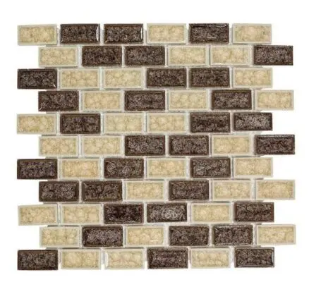 Hazelnut Butter Crackle 12 in. x 11-1/2 in. Ceramic and Glass Mosaic Tile adds a rustic charm to your space. The earth-toned mosaic features assorted rectangular pieces in a brick pattern. Constructed from ceramic and glass pieces that feature a crackle look. Combine with other mosaics and field tiles to create impressive installations. For best installation results, use white polymer-modified thinset.