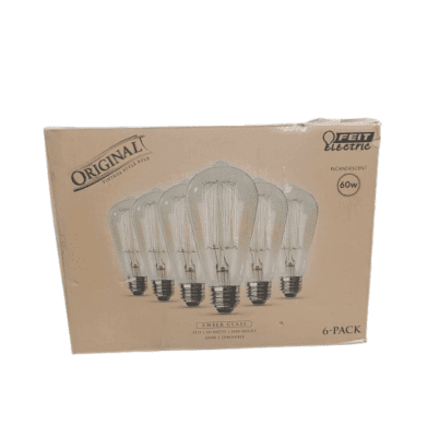 Feit Electric warm white dimmable 60-Watt ST19 Edison vintage light bulb transforms any kitchen, living room, bedroom, restaurant or bar into a retro locale. These decorative vintage light bulbs are designed with an intricate tungsten, spiral filament that emits 2100K light and evokes a nostalgic ambience when placed in light fixtures where it is exposed, such as dining room chandeliers, lanterns or when they are used as a statement piece on their own. Place them above a kitchen island, insert into light pendants and hang above a bar, give a bedroom a cozy vibe, or use them anywhere you need a vintage touch. Your options are endless! Their Amber glass housing mimics a traditional old-fashioned look and their 260-Lumen output creates a charming glow for a cozy atmosphere that draws people in. These classic filament light bulbs fit into light fixtures that are compatible with a medium E26 base. With full dimming capabilities, these bullet tip light bulbs allow you to dim up or down for customized vintage lighting you can enjoy across your spaces. Choose Feit Electric decorative Edison light bulbs for residential or commercial applications.