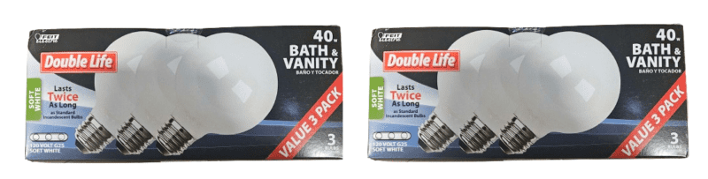 6-PACK Master Case Feit Vanity Globe Light Bulbs White 40G25-W-3