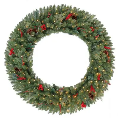 Festoon your home with festive cheer when you hang this Winslow fir pre-lit artificial wreath. The 560 branch tips offer a verdant, realistic look, and the warm white LEDs create a dazzling lighting effect to dress up your front door. Red berries, pine cones and leaves add a homespun finishing touch. Battery power supports flexible placement, eliminating the need for extension cords and plugs. This Winslow fir pre-lit artificial wreath measures a generous 60 inches, creating an instant focal point above your fireplace mantel or sofa.