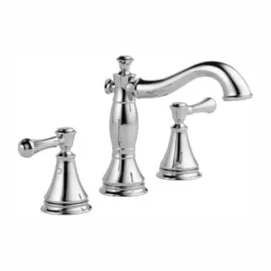 This Cassidy 8 in. 2-Handle High Arc Bathroom Faucet in Chrome is the obvious choice for a timeless, traditionally-styled bath. Inspired by 1800s ad for a Victorian corset, the bottom of the faucet is pulled in like a cinched corset, adding visual tension with elegant detailing. The Cassidy collection’s classical design plays off of the hugely popular Victorian-esque architecture. This WaterSense labeled lavatory faucet flows at a water-efficient rate of 1.2 GPM, helping you to effortlessly conserve water.