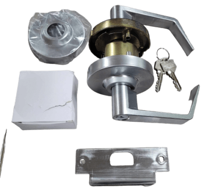 Robust BMHA Grade 2 Lever Lockset – Storeroom Function – Sierra (SB) Lever – 306 ANSI Strike (1-1/4″ x 4-7/8″, 1-1/4″ Lip, Square Corner) – R21 Dead Latch (1-1/8″, Square Corner, UL, 2-3/4″ Backset) – 26D Satin Chrome Finish – Keyed Different, CS Keyway