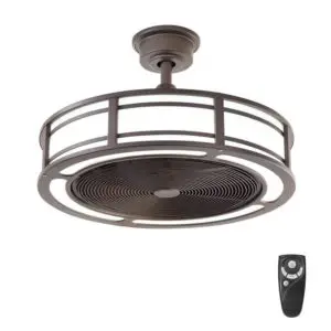 The Home Decorators Collection Drum Style 23 in. Espresso Bronze pendant fan will catch everyone’s eyes because of its unique design and functionality. The housing is illuminated with two 26-Watt LED light strips that are fully dimmable and will last up to 50,000 hours. Also, it comes with a remote control that can independently control the light brightness and speed of the fan, battery included.