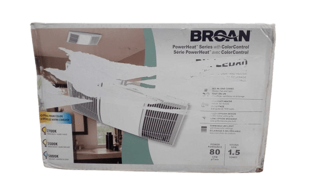 Help provide comfort and functionality to your bathroom with the addition of the Broan BHFLED80 exhaust bath fan with heater and integrated and dimmable LED lighting with CCT color control. This 80 CFM provides powerful airflow along with a stylish Brighter White fan cover matching any decor. Operating at just 1.5 sones, this solution offers quiet performance with enough sound to know your fan is on.