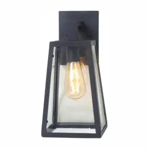 This Colonade 1-Light sand black (Medium Size) outdoor wall mount sconce with clear glass combines the traditional square shape with a pyramid design within a contemporary steel housing. The weather-resistant sand black finish complements the design. This sconce creates a stunning curb appeal that will accent your home perfectly.