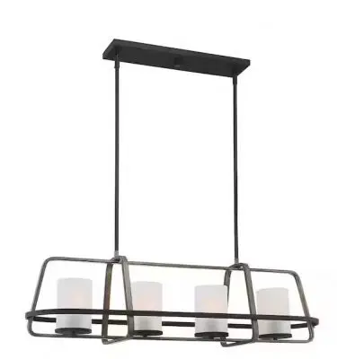 This chandelier is a perfect example of the classic farmhouse style redesigned for today’s modern home. With its unique Black and Wood Tone combination finish, this linear chandelier will be the star of your room. Seedy clear glass shades add style and sophistication whether over a dining room table or kitchen island area. This chandelier is made from steel and built to last, designed for dining areas or kitchen islands, and it can be mounted on a sloped ceiling.