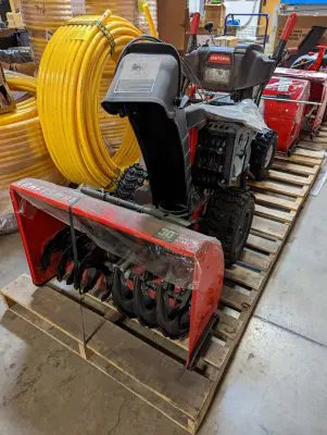 The 30-in. 357cc Electric Start Two-Stage Snow Blower eliminates pull-starting a cold engine. The strong serrated steel augers cut through snow for faster clearing, saving you time on those frigid mornings. A reinforced steel housing provides durability and ruggedness in tough snowy conditions. The 30-in. clearing width and 21-in. intake height provides an oversized clear. The power steering allows you to maneuverer through turns with the touch of a finger, while the 16-in. tires offer traction in deep snow conditions. Added features include heated hand grips, an in-dash LED headlight to provide greater visibility in low-light conditions and adjustable poly skid shoes to eliminate garage rust stains and protect surfaces from scuffing.
