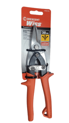 The Crescent Wiss All-Purpose Snips have serrated blades and compound action cutting. These snips are designed for many applications in trade work, such as cutting screening, shingles, or carpeting. Cut any direction through light-gauge metal, vinyl, leather, or other medium-duty materials and keep cutting longer with the spring-action mechanism and non-slip textured grips.