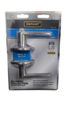 Affordably outfit interior doors with this lockable lever set from Defiant. The Olympic Privacy Lever easily mounts to doors 1-3/8 in. to 1-3/4 in. thick with the included hardware. A new design feature is the 70 mm rose plate that easily covers paint rings left from previous door hardware installations. Perfect for bedroom and bathroom doors beyond which privacy is sometimes desired. Provided with this set is an adjustable backset and interchangeable faceplates for drive-in and traditional installations. This sturdy lever nicely coordinates with other fixtures in your home for a cohesive look.