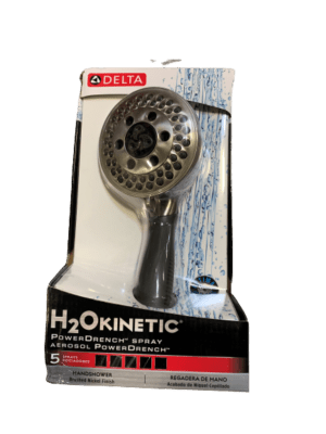 Choose from 5 spray settings: full body spray, full spray with massage, high-efficiency spray, massaging spray, and a water saving pause function. Easy turn dial for spray setting selection. Adjustable shower arm mounting for hands-free showering. H2Okinetic Technology and Touch Clean.