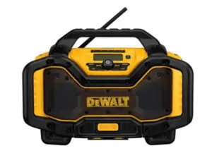 The DCR025 is designed to be the most versatile Jobsite Radio Charger on the market. The unit is able to run off and charge all DEWALT slide pack battery packs including 20-Volt and FLEXVOLT packs at 3 Amp when plugged into an AC outlet. The unit is designed to include woofers, tweeters and air ports to provide clear and rich sound at all volume levels. An oversized device storage box protects devices from worksite conditions and includes an Aux and 2.1 Amp USB charging port for convenient device charging. 2 AC Power outlets on the side of the unit allow you to plug in additional tools or chargers without occupying additional outlets on the wall. AVRCP (Audio Visual Remote Control Protocol) allows you to control your device from the radio interface so you can keep the device in a safe place and skip to the next song or hit replay on the radio interface.