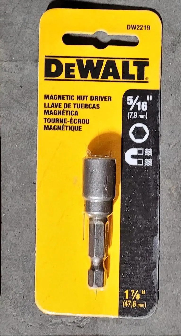 The DEWALT 5/16 in. x 1-7/8 in. Steel Magnetic Nut Driver uses a magnet to help prevent the drill attachment from dropping. This powerful driver is made from steel treated with an advanced hardening process for durability.